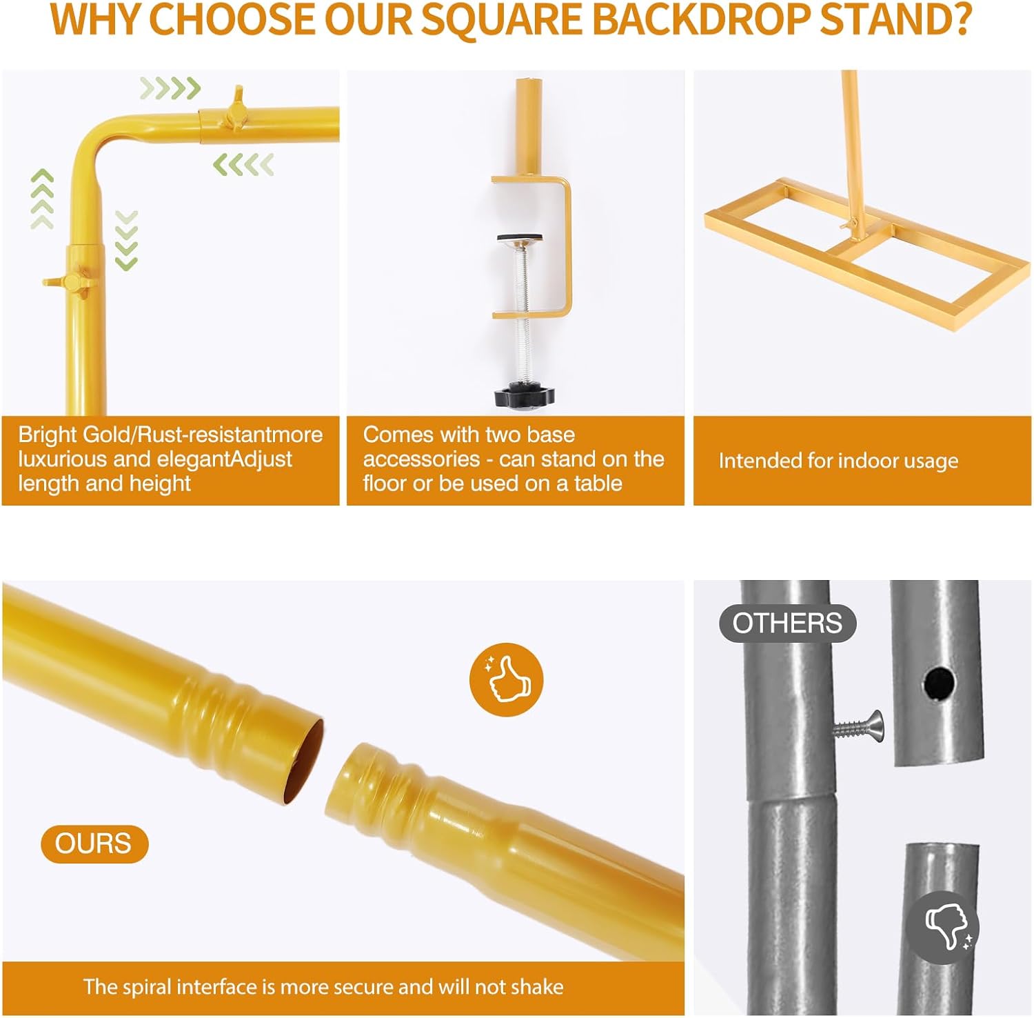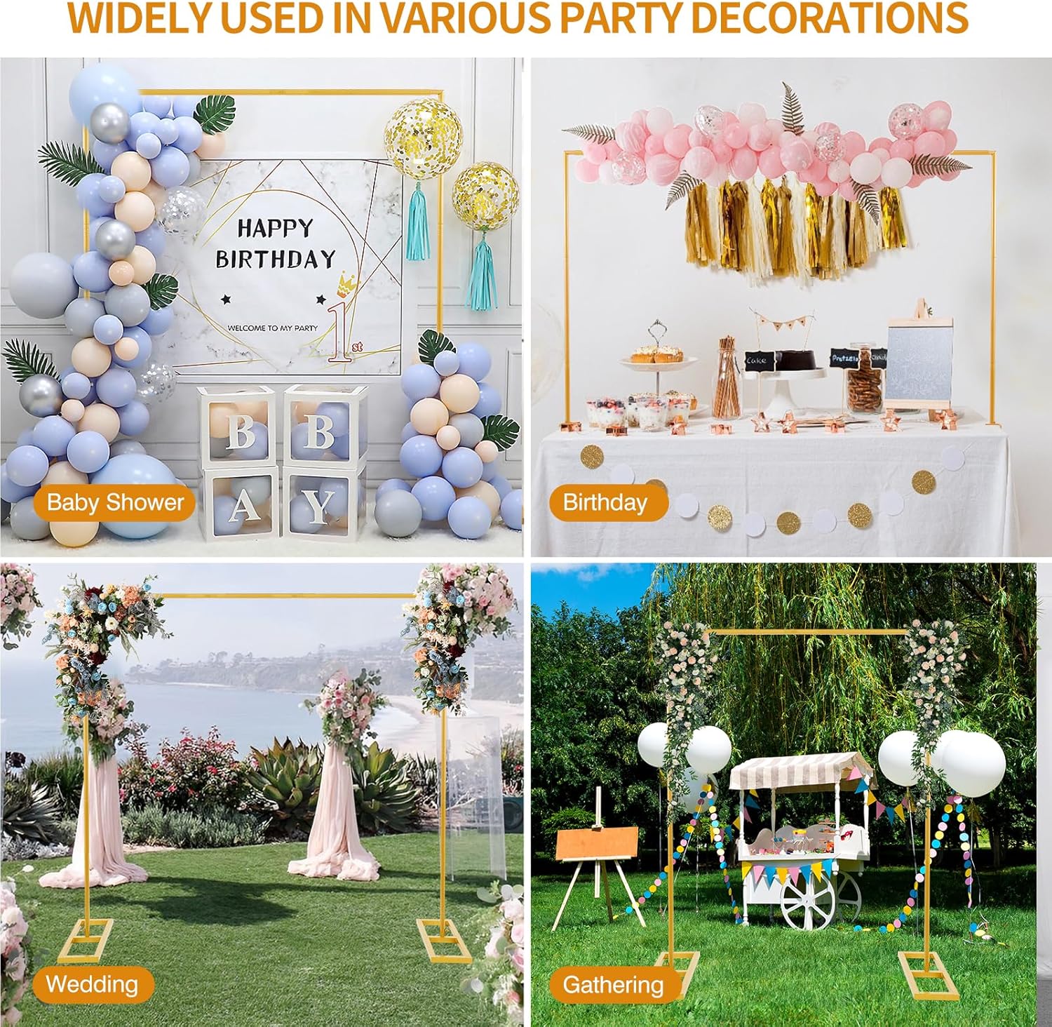 8.2FT Square Backdrop Stand,Wedding Arch Heavy Duty Adjustable Stand, Change Over The Table Rod Stand with Clamps,Metal Gold Balloon Arch Frame for Parties Decor(Two Person Installation)