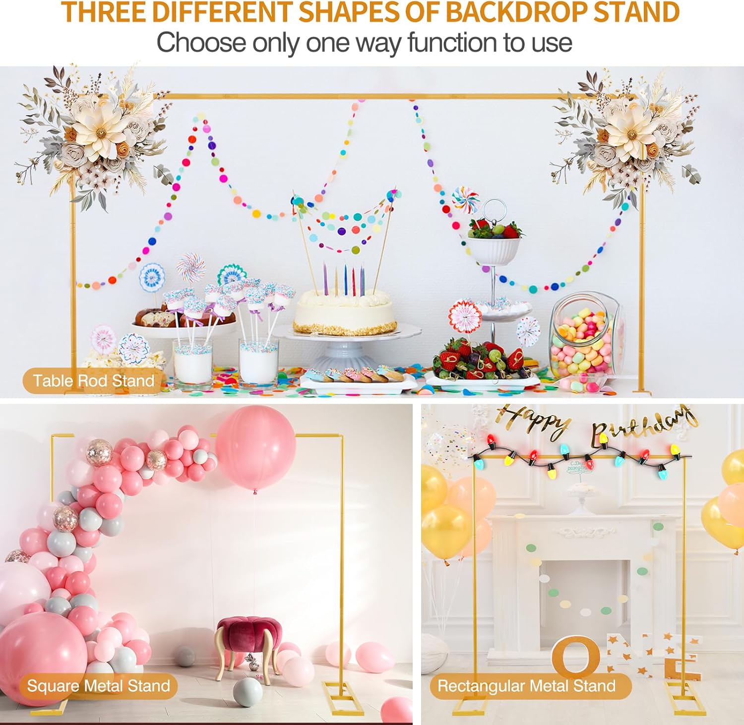 MULTI-FUNCTIONAL DESIGN: This metal arch backdrop stand can be used as a heavy duty backdrop stand or balloon arch stand, and can easily be converted into a tabletop stand with the included clips, offering flexibility for all types of events.