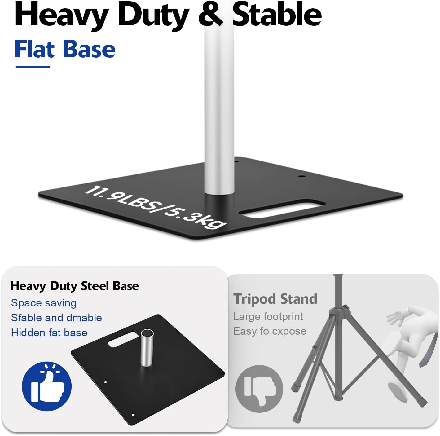 Heavy duty metal base plate: The thickened and widened heavy flat metal base plate is made of high-quality steel (each weighs 11.46 lbs, each base plate size is 15.75×15.75 in). It is more stable than a tripod and has a large contact area with the ground to ensure sufficient stability, preventing tipping