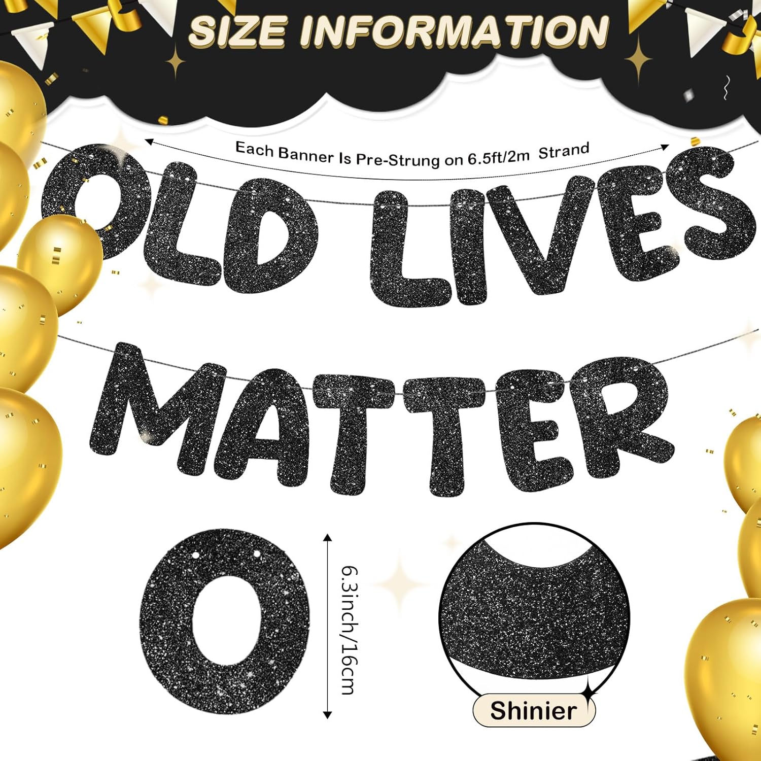 Fulmoon Pre Strung Banner 6.56 ft Funny Birthday Retirement Party Decorations 80th 70th 60th 50th Retirement Party Garland Bunting Decorations for Men Women(Glitter Black)