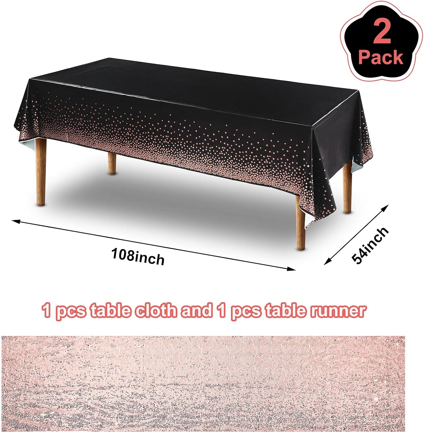 Irenare Tablecloth and Sequin Table Runner Set Polka Dots Confetti Table Cover Dining Plastic Tablecloths Glitter Decorations for Birthday Wedding Anniversary Party Supplies(Black, Rose Gold,2 Pcs)