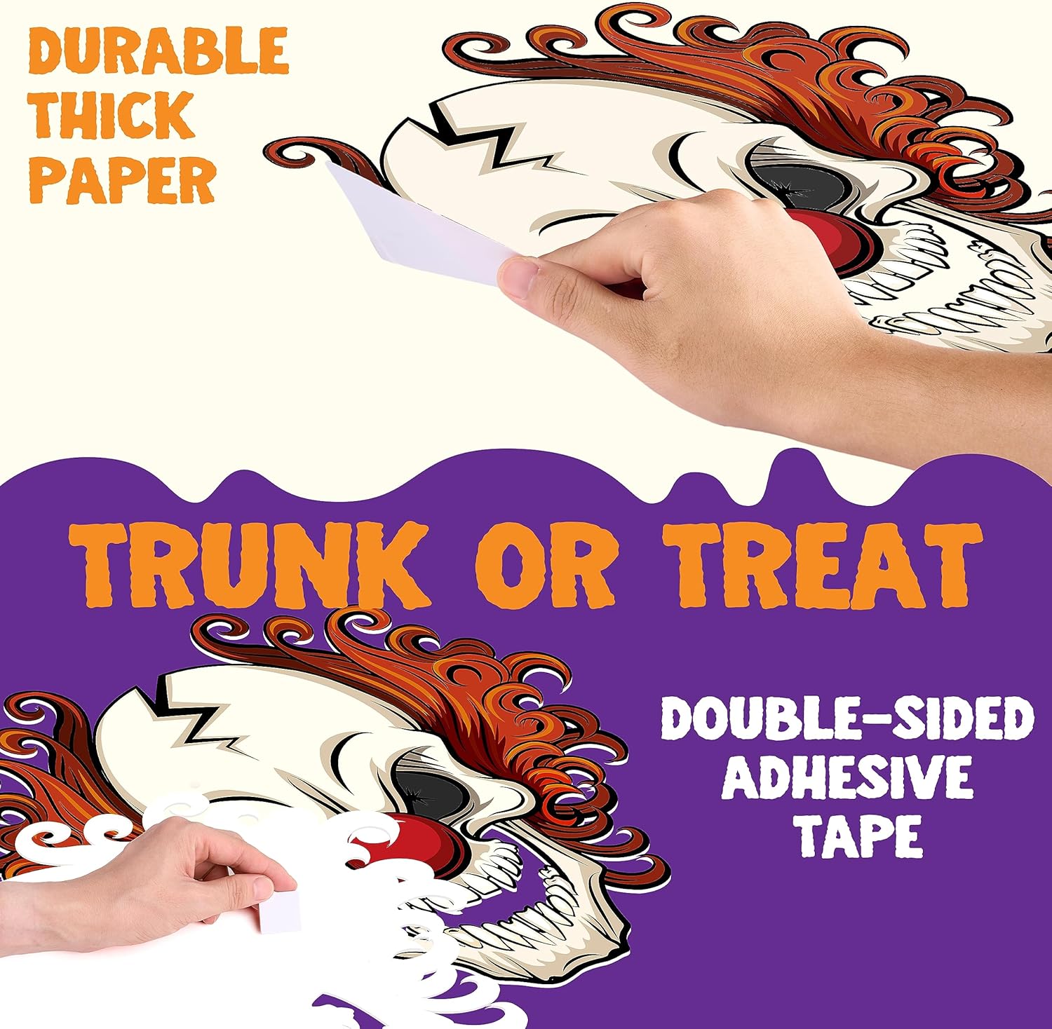 EASY TO USE: The trunk or treat car decoration kit can be easily placed on the surface with double-sided stickers. Used to fix decorations on walls or other indoor and outdoor decorations, it is suitable for garages, doors, arches, entrances, corridors, and car decorations.